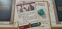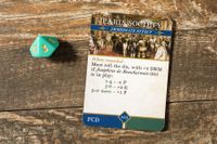 I like this simple choice, because it doesn't intrude on the flow of events beyond a binary choice to pull the trigger on it vs reusing it for a re-roll on a card or during the battle at the end of the turn that might or might not even happen. Essentially, this flip/resolve or flip/deny means this element of the game that reflects the events in the life that you can sometimes control and sometimes have to endure has a simple, elegant, and subtle mechanism at play. And sometimes you just get scabies and that's that....
