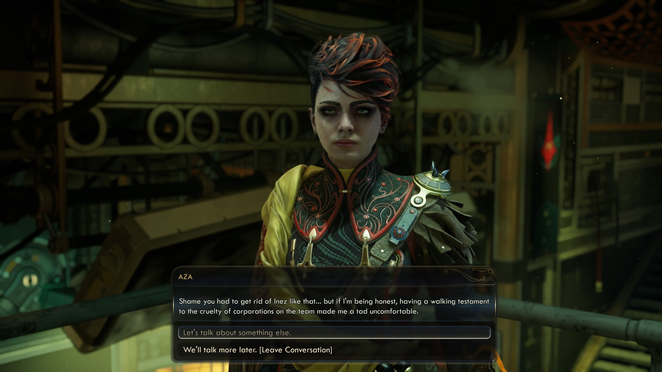 In the most egregious instance of technical issues, one of the first available party members, Inez, has her initial recruitment quest bugged, and it can become impossible to complete. During this quest, it is possible to select a dialogue choice that leads her to leave, yet, despite this being a choice, every party member afterwards for the rest of the game remarked on her dismissal from the crew, even though they hadn't met her at all. Entire companion questlines, Aza's in particular, can become wholly incompletable, and it is even possible to become hardlocked in a room halfway through the game. The Outer Worlds 2 is riddled with bugs, glitches, and sequence breaks too numerous to list that absolutely destroy its interactive elements and brutally hamper the story’s few redeeming qualities.