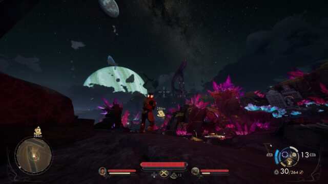 Visually, The Outer Worlds 2 is largely fine, with a few flashes of brilliance here and there in its world and architectural design. There is a lot of considerable attention to detail in the environments, and the first two planets are interesting, colorful, and presented well. In particular, the planet Dorado is quite gorgeous, especially at night, and its vibrant, glowing crystals amidst the grand, golden, and ruined architecture on the planet stand out as a particular highlight. Sadly, the other planets aren’t quite as interesting, and the visual fidelity of facial capture and expressions just isn’t good, which detracts from a game that focuses so heavily on dialogue.