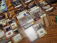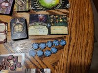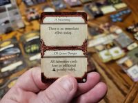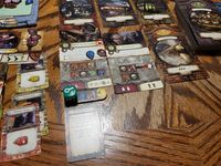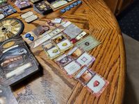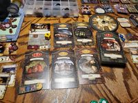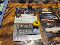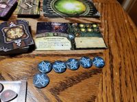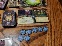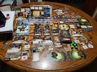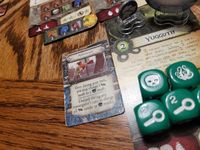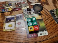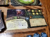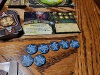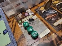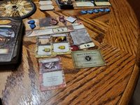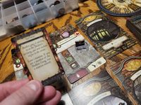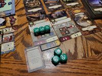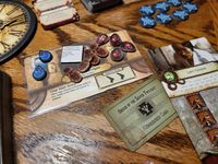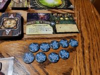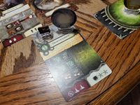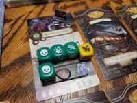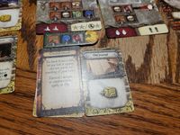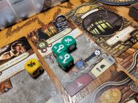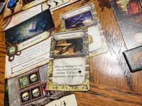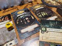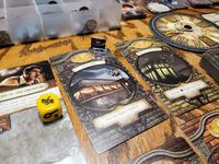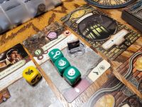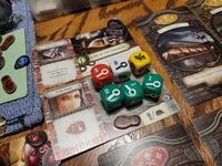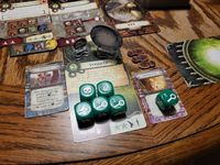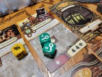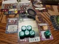 Combat: Eh, I'll be lazy and refer you to the "Five Leagues from the Borderlands" reviews, as combat is similar enough. Throw dice and stuff. Whee. As noted, in addition to placing enemies on the board, the Noise mechanics add unrevealed enemies as Noise markers to the game board. Resolving these Noise markers counts toward scenario victory, so bloodthirsty players should be satisfied.