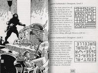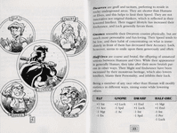 After that comes several pages of locations. These are organized by street and include several places on the street, each with a short description. Each street ends with another round of adventure ingredients. Some of the more important locations will have longer descriptions or a sidebar with additional details. In addition to 6 streets, there's another section for things on the outskirts of town, some of which are a little shadier than the main locations.