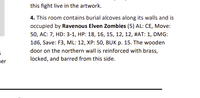 There’s an off phrase here an theorem padding things out. And a frustrating “Between the altar and the carving is a large chest containing the enemy’s hoard. From the way it’s piled, it looks like it was just dumped there. The hoard is Treasure Type B, with one each of types L, N, and O.” which really should have been expanded upon. There’s a rough fight in there also with an EHP and minions, but I’m gonna trust that the credited playtesters made it through without too much DM fudging.