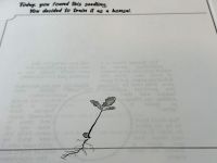 Again, I’m no artist, yet I was rather proud of how this turned out. And my bonsai seedling! It grew again, and I followed the instructions to attempt to add foliage.