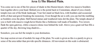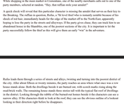 There are some parts to this that are quite good. In particular there’s a kind of perspective puzzle to get in to a building. Looking at the facade from one angle does one thing, looking at it from another does another thing. Shrinking features, growing features. It’s great puzzle, the likes of which is seldom seen in adventures. Not only is there this perspective thing going on but also a kind of environmental thing as you have to figure out how to, essentially, build a ramp to it in the skewed perspective that allows entrance. The designer is trying for, explicitly, an otherworldly vibe here and it does that quite well. It’s explained in a cumbersome way, and the evocative language is not really present, but the strength here is the core of the puzzle proper and it carries a lot of the heavy lifting for that vibe. Really good job and an excellent example of thinking about design in terms of imagination rather than starting from the standard book challenges of trap, environment, skill check.