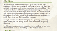 I don’t know, what do you want to talk about? The long sections of read-aloud in second person? That seems boring. The struggles of your level seven characters in crossing a two foot deep creek?