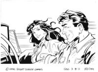 This is available as both a pdf and print product. The printed version is a square booklet measuring 9.25" per side and 34 interior pages. The interior is glossy and full color and the covers are of slightly heavier stock. In the middle there's a folded 4 panel pullout map of Sunset City, the setting for this hometown. Overall the book feels sturdy and is beautiful to look at.