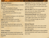So, the designer has tried, more so than most. That read-aloud is from the entrance room and it gives you options for sneaking in through a garbage pit under a barricade. And you can meet a goblin deserter, maybe. The designer has tried to paint a decent picture of an environment, from the read-aloud to the potential for interactivity through stabbing, sneakin, and talking.