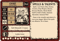 In contrast, the foes decks are in two sizes. The mages are on 4x6 cards, which is in keeping with future publications from SJG and Gaming Ballistic both. SJG's The Fantasy Trip Bestiary came with 4x6 cards for each beast, and the supplemental cards for a variety of TFT licensed products from Gaming Ballistic LLC were also on 4x6 cards.